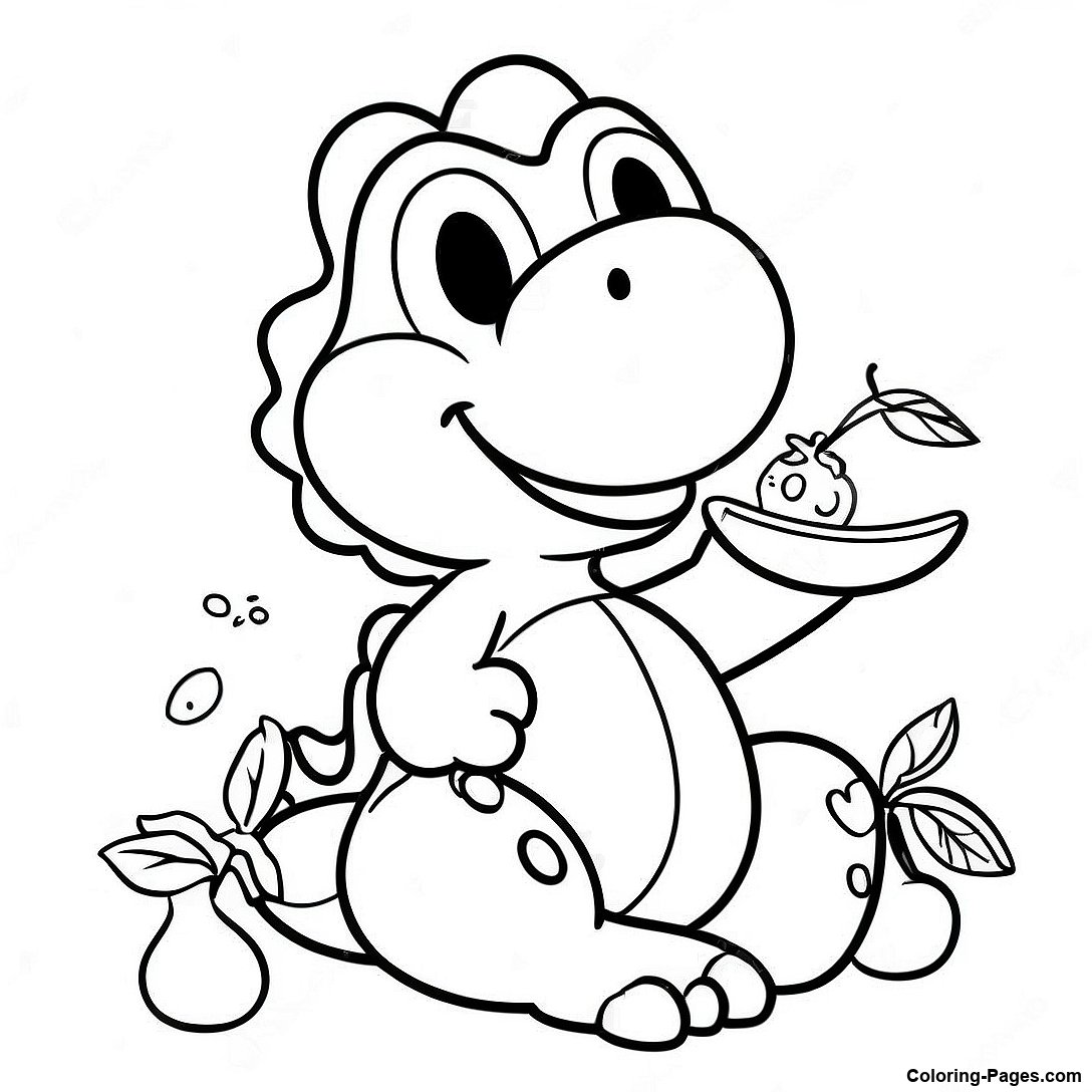 Download Printable PDF of Yoshi Eating Fruits Coloring Page